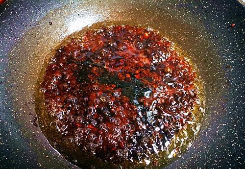 - 炸酱炒至浓稠,即可出锅。